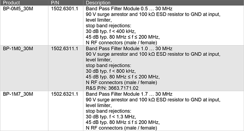 為進一步抑制帶外訊號,WSDU-1X8SR 可選配外接式帶通濾波器,簡易安裝於射頻輸入端,此類濾波器內建突波保護元件,可降低雜訊與互調效應。提供以下三種頻段選項: