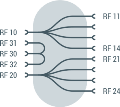 - 三組獨立射頻分配通道,可同時處理多組訊號