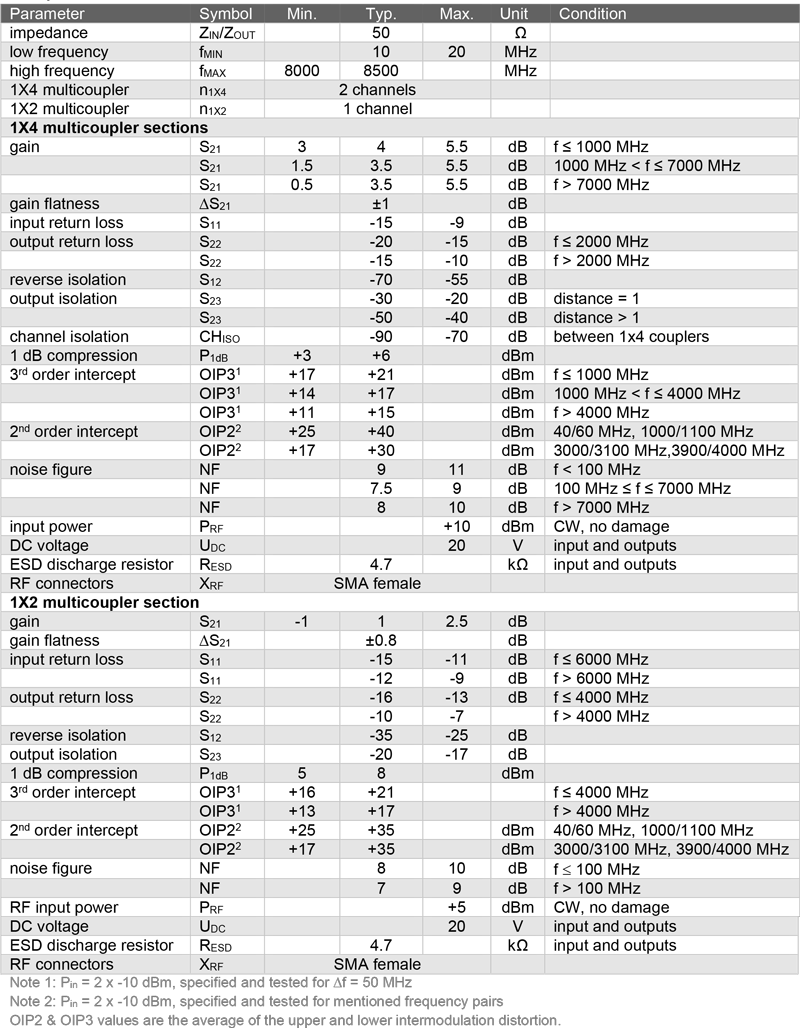 本模組內建三組多工分配單元,每一通道間具備高隔離度,可獨立處理不同來源之射頻訊號,不會互相干擾,適用於多訊號並行作業的測試或監控應用場景。