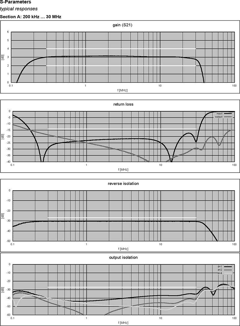 - A 區段針對短波訊號應用進行優化,提供極高的動態範圍與線性放大能力;