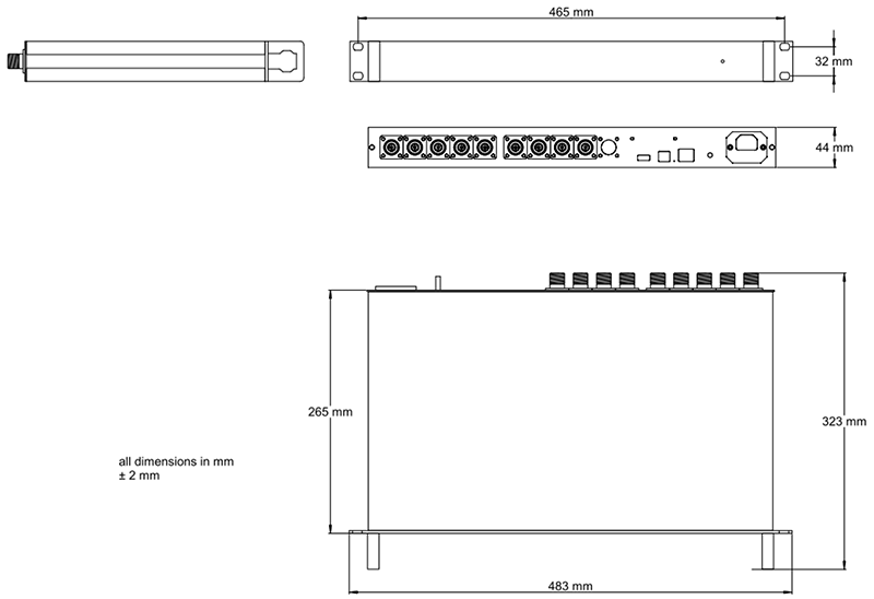 WSDU-2X4SER 採用雙區段獨立運作架構,每區段可將單一 RF 輸入訊號分配至四組輸出,具備高線性、高穩定度與超寬頻處理能力。