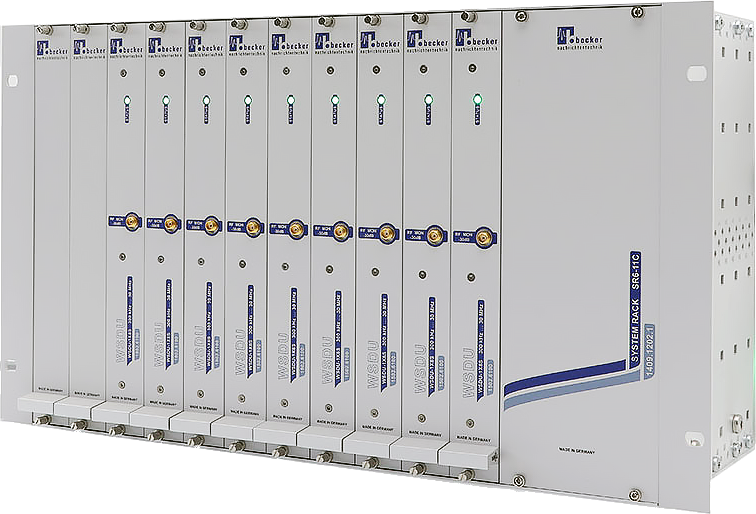 WSDU-9C1X8S 為一款 9 通道高頻訊號分配單元,專為專業短波接收系統中的訊號分配應用所設計,裝置採用模組化插槽架構,可安裝於標準 19 吋系統平台,具備高度整合與可擴展性;各插槽模組(WSDU-1X8S)透過平台內部背板供電,無需額外外部配線,大幅簡化佈線與系統整合作業;射頻(RF)輸入與輸出埠配置於模組背面,可自系統機架後方直接存取,提升安裝與維護效率;模組前側另設置 RF 監控埠(Monitoring Port),便於即時量測與診斷。