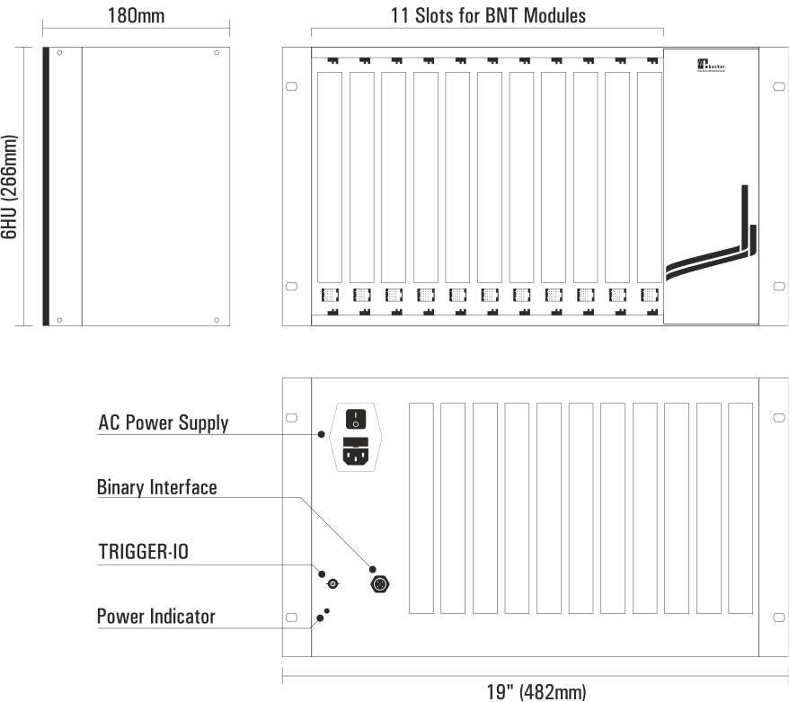 以及一組用於整合至 SR6-11C 系統平台的控制器模組,模組之控制作業經由 SR6-CU 插槽控制器完成,支援以 SCPI 格式之 ASCII 命令字串進行操作,系統將依據安裝之模組自動建立並擴充 ASCII 命令集;所有可用插槽模組列於下方「相關產品」中。